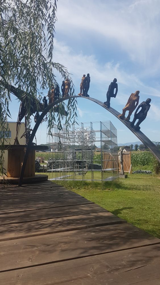 "Das KunschtGärtli Team bedankt sich bei Housi Oberli und seinem Team für die Zusammenarbeit und für die Herstellung des weltreisenden KunschtGärtli Klebers."